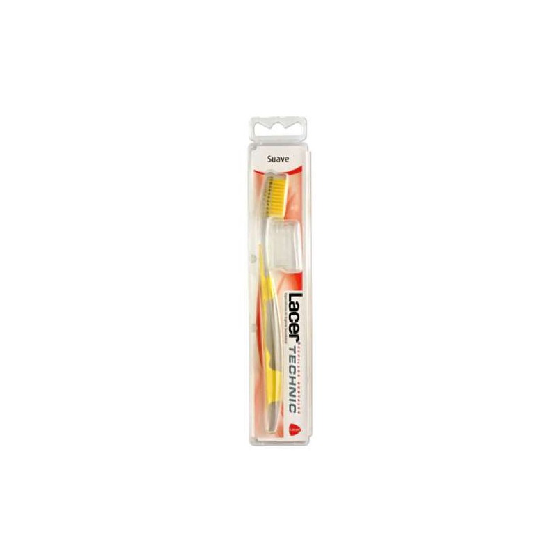 No contiene látex Cepillo dental para adultos con filamentos de tynex texturizados de nylon En todos la altura del recortado de los filamentos es de 10 mm Tipos de cepillo: Fuerte: Cabezal compuesto por 38 mechones (filamentos / mechón 39) Parte externa compuesta por 21 mechones (monofilamentos de 0009 pulgadas de grosor)(monofilamentos de 0009 pulgadas de grosor) Medio Cabezal compuesto por 38 mechones (filamentos / mechón 40) Parte externa compuesta por 21 mechones (monofilamentos de 0008 pulgadas de grosor)(monofilamentos de 0008 pulgadas de grosor) Medio Duplo Forma de la cabeza: tamaño medio y forma de diamante Cabezal compuesto por 38 mechones (filamentos / mechón 40) Parte externa compuesta por 21 mechones (monofilamentos de 0008 pulgadas de grosor) Parte interna compuesta 17 mechones(monofilamentos de 0008 pulgadas de grosor) Cepillo bimaterial Suave: Forma de la cabeza: diamante Cabezal compuesto por 38 mechones (filamentos / mechón 46) Altura del recortado de los filamentos (10 mm) Cabezal: Parte externa compuesta por 21 mechones (monofilamentos de 0006 pulgadas de grosor) Parte interna compuesta por 17 mechones (monofilamentos de 0007 pulgadas de grosor) Extrasuave Cabezal compuesto por 38 mechones (filamentos / mechón 48) Parte externa compuesta por 21 mechones (monofilamentos de 0005 pulgadas de grosor) Parte interna compuesta por 17 mechones (monofilamentos de 0004 pulgadas de grosor) Blanqueante: Tamaño medio y con forma de diamante Filamentos Embossed Tynex (by Dupont) Cabezal compuesto por 48 mechones 40 filamentos por mechón Dureza: medio Cepillo bimaterial Características: filamentos Tynex con puntas pulidas redondeadas con extremos texturizados que protegen dientes y encías Cuello flexible y alargado que permite un fácil manejo llegando a zonas de difícil acceso Mango anatómico y superficie de amplia sujeción Su sistema nonslip antideslizante evita que el mango resbale durante el cepillado Cabezal de reducido tamaño que facilita el cepillado en zonas de difícil acceso Su forma redondeada evita rozaduras y previene posibles lesiones en las encías y en la mucosa oral