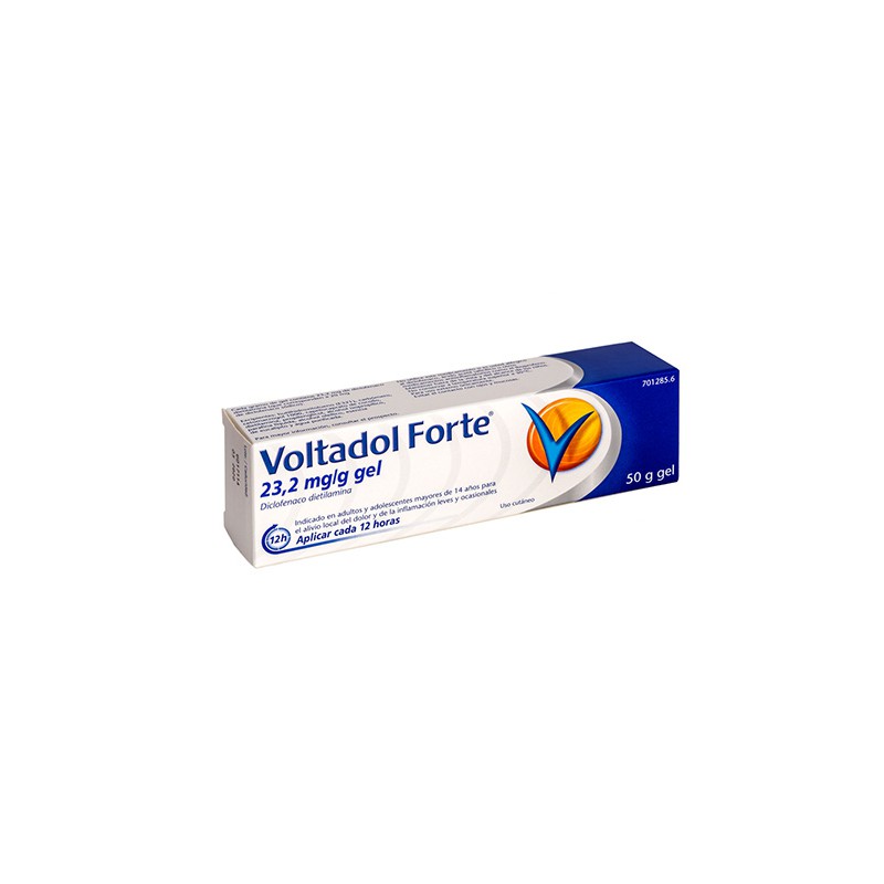 Antiinflamatorio y analgésico tópico El diclofenaco es un antiinflamatorio no esteroídico derivado del ácido fenilacético que actúa impidiendo la síntesis de prostaglandinas y otros prostanoides mediante la inhibición de la ciclooxigenasa que interviene en procesos inflamatorios Absorción: * Gel tópico: Biodisponibilidad del 6% La Cmax es de 15538 ng/ml alcanzándose al cabo de 1014 h de la aplicación Distribución: Alta unión a proteínas plasmáticas (99%) fundamentalmente a albúmina Vd de 13 l/kg Metabolismo: Se metaboliza casi completamente en hígado mediante reacciones de hidroxilación y conjugación con glucurónico Eliminación: Se elimina en orina (65%) y bilis (35%) fundamentalmente como metabolitos conjugados Se detectan pequeñas cantidades de diclofenaco inalterado en orina y bilis La t1/2 es de 2 h Tratamiento sintomático de procesos que cursen con [INFLAMACION] y/o [DOLOR AGUDO] como: * [CONTUSION] o [ESGUINCE] producido por torceduras * [TORTICOLIS] u otra [CONTRACTURA MUSCULAR] * [LUMBALGIA] "OLFEN FORTE VOLTADOL FORTE" Adultos y adolescentes mayores de 14 años: aplicar cada 12 horas (preferiblemente mañana y noche) una fina capa (24 g de gel equivalente al tamaño de una cereza o nuez respectivamente) Duración del tratamiento: si los síntomas continúan o empeoran después de 5 días de utilización se recomienda consultar al médico y/o farmacéutico No se han descrito interacciones a las dosis recomendadas Sin embargo en caso de absorción sistémica significativa podrían aparecer las mismas interacciones que con diclofenaco sistémico Además y al igual que con cualquier tratamiento tópico no es aconsejable administrar dos medicamentos tópicos a la vez sobre la misma zona Dermatológicas: Frecuentes (110%) reacciones locales en la zona de aplicación como [PRURITO] [IRRITACION CUTANEA] [ERITEMA] [ERUPCIONES CUTANEAS] con aparición de pústulas o pápulas en ocasiones Alérgicas: Poco frecuentes (0110%) [REACCIONES DE HIPERSENSIBILIDAD] [DERMATITIS DE CONTACTO]; casos puntuales de [ANAFILAXIA] [ANGIOEDEMA] y [REACCIONES DE FOTOSENSIBILIDAD] En caso de absorción importante podrían aparecer las reacciones adversas sistémicas del diclofenaco Se debe consultar con el médico y/o farmacéutico si se han descrito reacciones alérgicas previas a otros antiinflamatorios incluido ácido acetilsalicílico No cubrir la zona con vendajes oclusivos No debe aplicarse sobre zonas de piel con quemaduras heridas abiertas dermatitis o infecciones No exponer las zonas tratadas al sol o a fuentes de luz UVA hasta al menos un día después de la última aplicación Consultar con el médico y/o farmacéutico si los síntomas continúan o empeoran después de los días que se establecen en el prospecto para la presentación correspondiente Aplicar sobre la piel realizando un masaje hasta que se absorba el gel Síntomas: Debido a su vía de administración no es muy probable que aparezcan síntomas en caso de sobredosis si bien una ingestión accidental o una aplicación inadecuada podrían producir los efectos adversos sistémicos típicos Tratamiento: En caso de ingestión accidental se procederá a realizar lavado de estómago y tratamiento sintomático Hipersensibilidad a diclofenaco o a cualquier otro componente del medicamento Existen comunicaciones de reacciones alérgicas cruzadas entre distintos AINE así como con salicilatos por lo que tampoco se recomienda usar diclofenaco en caso de [ALERGIA A AINE] o [ALERGIA A SALICILATOS] En los pacientes que hayan sufrido previamente ataques de [ASMA] [URTICARIA] o [RINITIS] provocada por el ácido acetilsalicílico u otro fármaco antiinflamatorio no esteroideo (AINE) No aplicar sobre heridas lesiones eczematosas mucosas ni en quemaduras En niños y adolescentes menores de 14 años En el tercer trimestre de embarazo No administrar concomitantemente con otros productos que contengan diclofenaco [REACCIONES DE FOTOSENSIBILIDAD] El diclofenaco ha dado lugar a reacciones de fotosensibilidad Se recomienda no exponer las zonas tratadas al sol o a la luz UV durante al menos un día Reacciones sistémicas El riesgo de que aparezcan reacciones sistémicas por diclofenaco tópico es mínimo si bien no se puede descartar si se produce una absorción sistémica significativa como puede suceder si se aplica en zonas de piel dañadas (dermatitis quemaduras heridas) o con un vendaje oclusivo Se recomienda atenerse a las recomendaciones posológicas en pacientes con asma historial de úlcera péptica insuficiencia renal o cardíaca así como hipertensión Seguridad en animales: no se vio afectado el desarrollo prenatal perinatal y postnatal de la progenie Seguridad en humanos: aproximadamente el 10% de la dosis tópica es absorbida sistémicamente con una biodisponibilidad considerablemente menor por vía tópica que por vía oral No se dispone de estudios adecuados y bien controlados en humanos con diclofenaco por vía tópica pero el diclofenaco sistémico ha dado lugar a efectos tóxicos fetales en las etapas finales del embarazo Si bien la absorción cutánea es mínima no se puede descartar que no aparezcan efectos sistémicos La utilización tópica de diclofenaco durante los dos primeros trimestres del embarazo sólo se acepta si no existiendo otras alternativas terapéuticas más seguras los beneficios superan los posibles riesgos El empleo de diclofenaco durante el tercer trimestre de embarazo está contraindicado ya que el diclofenaco se ha asociado a retraso del parto y efectos adversos cardiopulmonares en el feto como cierre prematuro del ductus arteriosus e hipertensión pulmonar y renales como insuficiencia renal aguda y oligohidramnios Además puede aumentar el tiempo de sangrado en la madre Efectos sobre la fertilidad: no existe evidencia de que el diclofenaco tenga un potencial teratogénico en ratones ratas o conejos En humanos los datos preclínicos obtenidos en estudios de toxicidad aguda y a dosis repetidas as