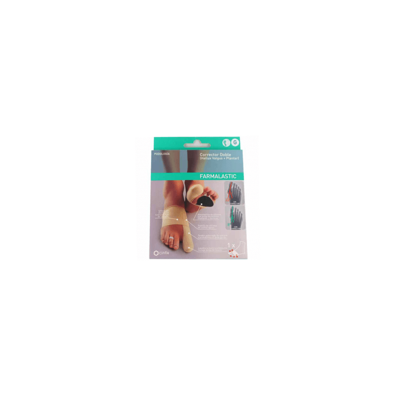 Este producto es para uso diurno actúa dinámicamente durante la marcha y es eficaz cuando se utiliza de forma continuada La parte de la almohadilla en contacto con la suela del zapato siempre es negra así se comprueba que la prenda es adecuada para pie izdo o dchoPasar el empeine por la banda Encapuchar el dedo gordo Enganchar la tira elástica en el 22 o tercer dedo en función de donde se quiera centrar la almohadilla Colocar la pastilla de silicona detrás del juanete Ajustarla tensión sobre el dedo dorso tirando de la banda hacia el tobillo suavemente el primer día y aumentar hasta legar al máximo a los 10 díasEn personas que padezcan diabetes arteritis polineuritis neuropatía de los miembros inferiores o ulceras varicosas vigilar durante la utilización Lavar a maquina sin frotar o a maquina (max 30°C) utilizando la bolsa de lavado adjunta Al seca no exponer al sol radiadores ni cualquier otra fuente de calor No planchar El contacto de la prenda con cremas o aceites deteriora las fibras haciéndolas menos elásticas y más débiles Corregir y limitar la evolución del juanete (Hallux Valgus) aliviando los dolores articulares y los ocasionados por el roce Evitar y aliviar los dolores plantares del antepie debidos a envejecimiento o desgaste de la almohadilla plantar natural del pie durezas etc El corrector doble patentado a diferencia de los correctors rígidos se utiliza durante la jornada gracias a su diseño flexible y ultrafino Realinea el 1er dedo del pie de forma regulable y también el 1er metatarsiano a la vez que ayuda a aliviar el dolor tanto articular como por roce en el juanete y la zona metatarsiana Llevándolo a diario con cualquier tipo de calzado no sólo corrige y ayuda a aliviar el dolor también limita la progresión del juanete Silicona 56% Poliamida/elastano 44% Producto sanitario Clase I
