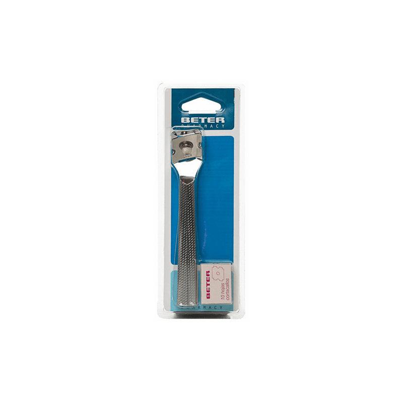 Graduar el corte de la hoja por mediación del tornillo Pasar suavemente por la dureza o callo hasta su alisamiento Cabezal metálico con curvatura especialmente estudiada para minimizar el peligro de corte Elimina callos y durezas de forma eficaz Los callos son una hiperqueratinización localizada con un núcleo más denso en parte superior y lados de los dedos del pie (frecuente en articulaciones) muy dolorosos si presionan terminaciones nerviosasSe originan por un calzado inadecuado por el roce y presión sostenidos en zonas que no soportan el peso del cuerpoAparece enrojecimiento de la piel con sensación de escozor y picor Si el roce persiste se forma una dureza que acaba convirtiéndose en un calloLa mejor forma de prevenir la aparición de los callos es eliminar la causa de la presión o roce y por tanto es indispensable el uso de calzado cómodo y apropiado