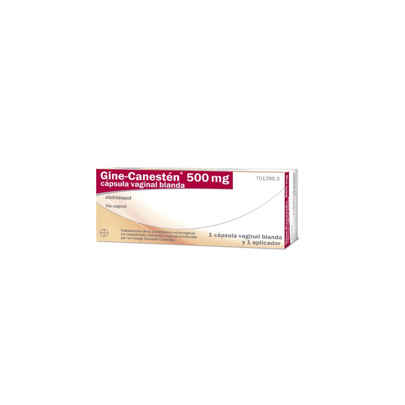 Antifúngico Clotrimazol es un antifúngico con estructura imidazólica y actividad esencialmente fungistática (fungicida a 5 CMI) Inhibe la producción de ergosterol al unirse al sitio hemo del citocromo P450 cofactor del enzima lanosterol14alfadesmetilasa La disminución de los niveles de ergosterol junto con la acumulación de lanosterol ocasiona alteraciones estructurales y funcionales de la membrana celular aumentando su permeabilidad y favoreciendo la lisis celular Mecanismos de resistencia: se han notificado casos puntuales de resistencias a clotrimazol tanto primarias como secundarias Por regla general se han descrito los siguientes mecanismos de resistencias a antifúngicos azólicos: Alteraciones en la permeabilidad de la membrana Aparición de bombas de expulsión Alteraciones de la diana por hiperproducción del enzima o por aparición de mutaciones en el gen ER11 que codifica al lanosterol14alfadesmetilasa Incremento en la actividad del citocromo P450 fúngico requiriéndose mayor dosis de antifúngico Sensibilidad/resistencia microbiana: presenta un amplio espectro con una CMI entre 00624 mcg/ml siendo eficaz frente a los siguientes hongos: Microorganismos sensibles: * Dermatofitos: Trychophyton spp Ephidermophyton spp Microsporum spp * Levaduras: Candida spp Malassezia furfur Histoplasma capsulatum * Hongos dismórficos: Coccidioides immitis Blastomyces dermatitidis Paracoccidioides brasiliensis Sporothrix schenckii * Otros hongos: Cryptococcus neoformans * Otros microorganismos: Naegleria fowleri Nocardia spp Microorganismos resistentes: Haemophilus vaginalis Trichomonas vaginalis Se han descrito fenómenos de menor sensibilidad a antifúngicos azólicos en determinadas especies de Candida spp diferentes a C albicans que pueden dar lugar a infecciones en pacientes inmunocomprometidos o diabéticos Vía vaginal: Absorción: baja absorción sistémica con cp inferiores al límite de detección (10 ng/ml) [CANDIDIASIS VAGINAL] * Tratamiento de la candidiasis vaginal no complicada en adultas y adolescentes a partir de 12 años Se deben tener en cuenta las recomendaciones oficiales referentes al uso adecuado de antifúngicos y en especial a aquellas relacionadas con problemas de resistencias GINECANESTEN 500 mg CAPSULAS BLANDAS Y COMPRIMIDOS VAGINALES: Adultas: 1 comprimido o 1 cápsula preferiblemente por la noche Si los síntomas persisten al finalizar el tratamiento o recurren en 2 meses consultar con el médico No debe iniciarse el tratamiento durante la menstruación En caso de candidiasis vulvar extensa podría ser necesario un tratamiento adicional con antifúngicos tópicos Niñas y adolescentes < 18 años: * Adolescentes > 12 años: igual que adultas * Niñas < 12 años: no se recomienda Ancianos: no se han realizado recomendaciones posológicas específicas Tacrolimús sirolimús Podrían incrementarse los niveles del inmunosupresor Vigilar síntomas de toxicidad Suele ser bien tolerado dando lugar casi exclusivamente a reacciones locales que normalmente no tienen gravedad y que desaparecen a los pocos días del tratamiento Las reacciones adversas se describen según cada intervalo de frecuencia considerándose muy frecuentes (>10%) frecuentes (110%) poco frecuentes (011%) raras (00101%) muy raras (<001%) o de frecuencia desconocida (no puede estimarse a partir de los datos disponibles) Digestivas: frecuencia desconocida [DOLOR ABDOMINAL] Genitourinarias: frecuencia desconocida reacciones locales en la zona de aplicación con descamación vaginal [PRURITO VAGINAL] [ERUPCIONES CUTANEAS] [EDEMA] [ERITEMA] molestias locales con sensación de quemazón o irritación [DOLOR PELVICO] [HEMORRAGIA VAGINAL] Alérgicas: frecuencia desconocida [REACCIONES DE HIPERSENSIBILIDAD] incluyendo [URTICARIA] [SINCOPE] [DISNEA] [HIPOTENSION] No olvide administrar clotrimazol todos los días y durante el periodo de tiempo que le haya indicado su médico aunque ya hayan desaparecido los síntomas Una suspensión prematura podría favorecer la reaparición de los mismos así como la generación de resistencias Si los síntomas continúan al finalizar el tratamiento o si vuelven a aparecer en un periodo inferior a 2 meses consulte con su médico No utilice tampones u otros productos vaginales como espermicidas durante la utilización de clotrimazol Clotrimazol podría dañar a los preservativos o diafragmas Informe a su médico y/o farmacéutico si experimenta alguno de estos síntomas: * Fiebre náuseas dolor abdominal o de espalda aumento del flujo vaginal o cambios en su aspecto u olor o hemorragia vaginal Síntomas: es poco probable una intoxicación significativa en caso de aplicación tópica Tras la ingestión accidental se han observado vómitos y molestias gastrointestinales Medidas a tomar: Antídoto: no hay antídoto específico Medidas generales de eliminación: en caso de aplicación excesiva podría bastar con lavar la zona y suspender temporalmente el tratamiento Si se produce intoxicación sintomática por ingestión accidental podría ser necesario el lavado gástrico con protección de las vías aéreas Monitorización: estado clínico de la paciente Tratamiento: sintomático [ALERGIA A ANTIFUNGICOS AZOLICOS] o a cualquier otro componente del medicamento [INMUNODEFICIENCIA] Los pacientes con inmunodeficiencia como [INFECCION POR VIH] sometidos a [TRASPLANTE] mujeres con [DIABETES] o que reciban corticoides orales podrían no responder bien a pautas cortas de tratamiento En estas pacientes podría existir mayor riesgo de infección por especies de Candida diferentes a C albicans habiéndose notificado casos de disminución de sensibilidad a los antifúngicos azólicos Reacciones de hipersensibilidad Suspender el tratamiento si aparecen reacciones alérgicas locales Evitar la utilización de tampones duchas vaginales o cualquier producto vaginal durante la utilización de clotrimazol Medidas anticonceptivas Clotrimazol puede afectar negativamente al látex por lo que se reco